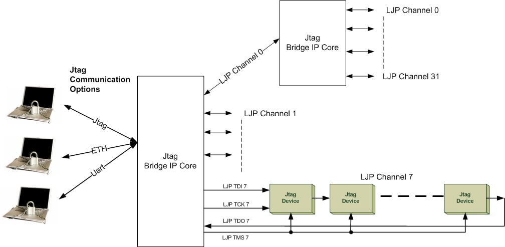 - Jtag Bridge support for up to 32 local Jtag ports