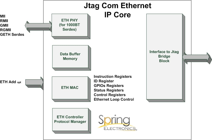 Spring Electronics Jtag Com IP Core features: ETH - Complaint to IEEE802.3Z standard