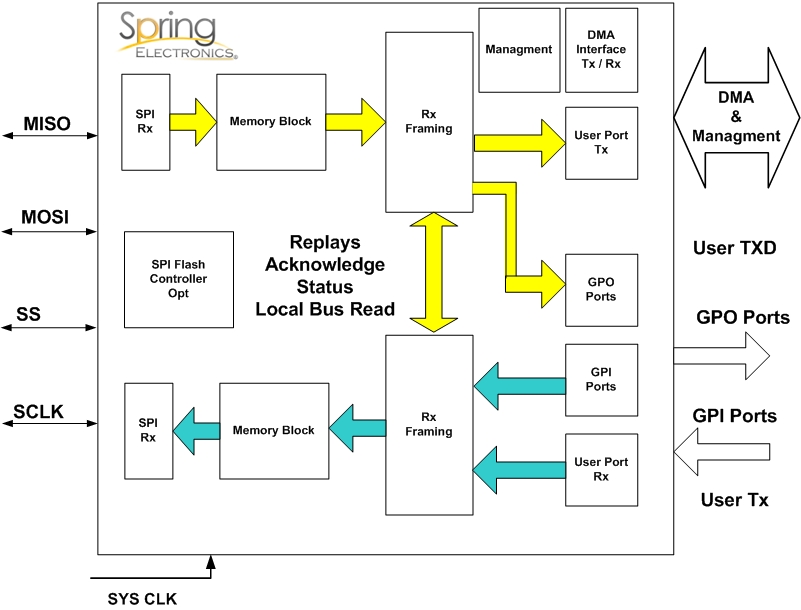 - Built In framing controller – enable support and build framing over SPI interface